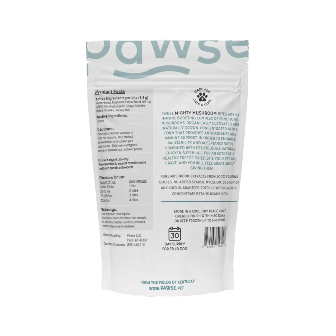Looking for a powerful daily boost for your dog’s immune system, brain, and longevity? Pawse Mighty Mushroomsdelivers five of the most studied medicinal mushrooms—Chaga, Maitake, Reishi, Shiitake, and Turkey Tail—in their most bioavailable extract form, paired with sustainably farmed catfish for a clean, omega-rich protein source that dogs love. This is adaptogenic, functional food at its finest—rooted in tradition, backed by science, and crafted with care.