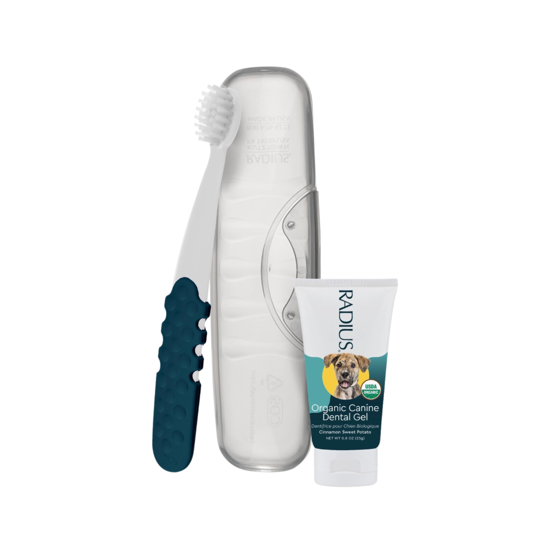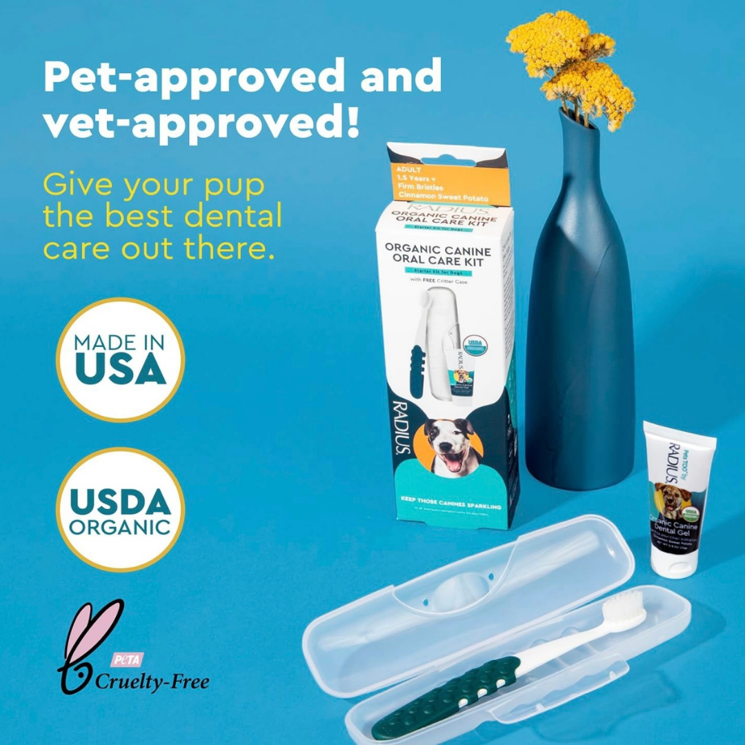 Your favorite canine organic dental solution that will help keep those canines healthy for life. This organic dental kit contains a premium toothbrush and a handy 0.8 ounce travel tube of organic dental gel and a FREE clear, critter case for handy, mess-free storage.