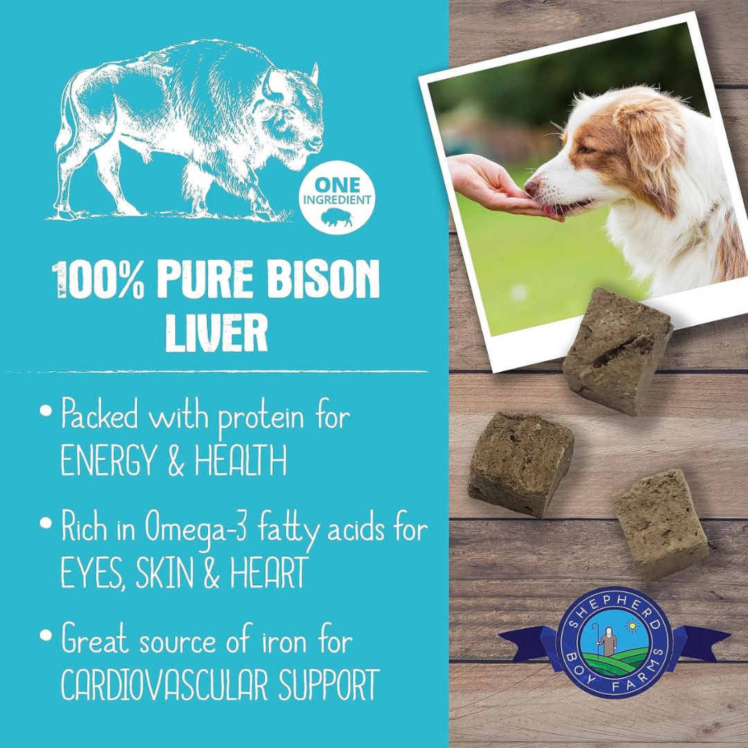 Shepherd Boy Farms Bison Liver makes it easy to give your dog the ancestral nutrition their body craves—pure, powerful, and wildly delicious.