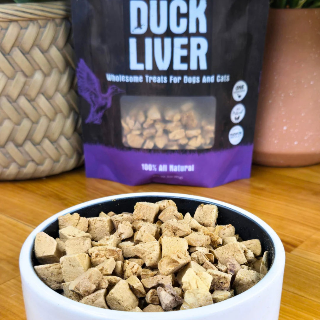 Duck liver is one of the most concentrated sources of essential nutrients in a dog’s diet—especially vitamin A, which plays a key role in immune defense, cellular repair, and skin regeneration. It’s also rich in iron, zinc, and B vitamins that support red blood cell formation, brain function, and metabolism. Because it’s freeze-dried raw, this liver retains its nutritional integrity and natural flavor, making it an excellent choice for dogs who need extra nourishment—or just a healthy reward that tastes amazing.
