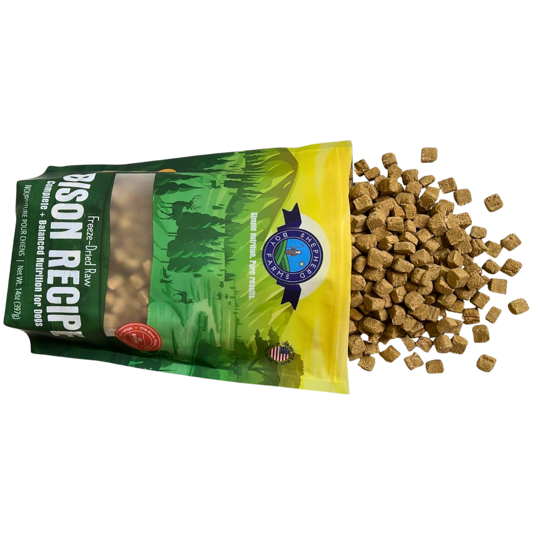 Shepherd Boy Farms Freeze-Dried Raw Bison is more than just a novel protein—it’s an integrative, nutrient-dense meal designed to nourish your dog from the inside out.
