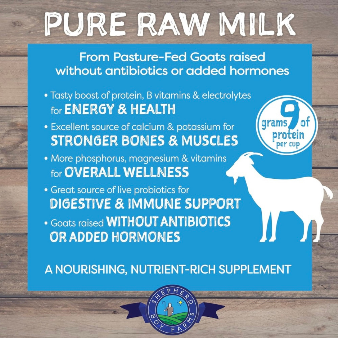 → Raw Goat’s Milk – Rich in enzymes, probiotics, and nutrients to support digestion, immune health, and skin
