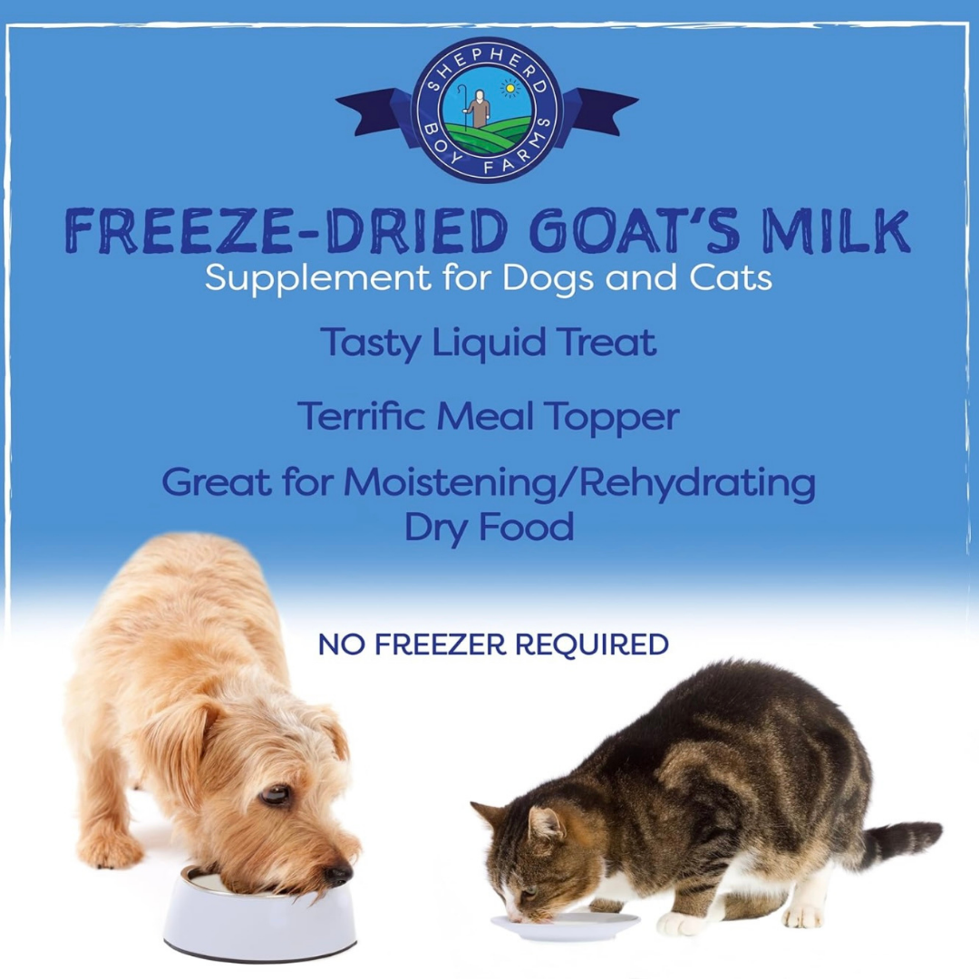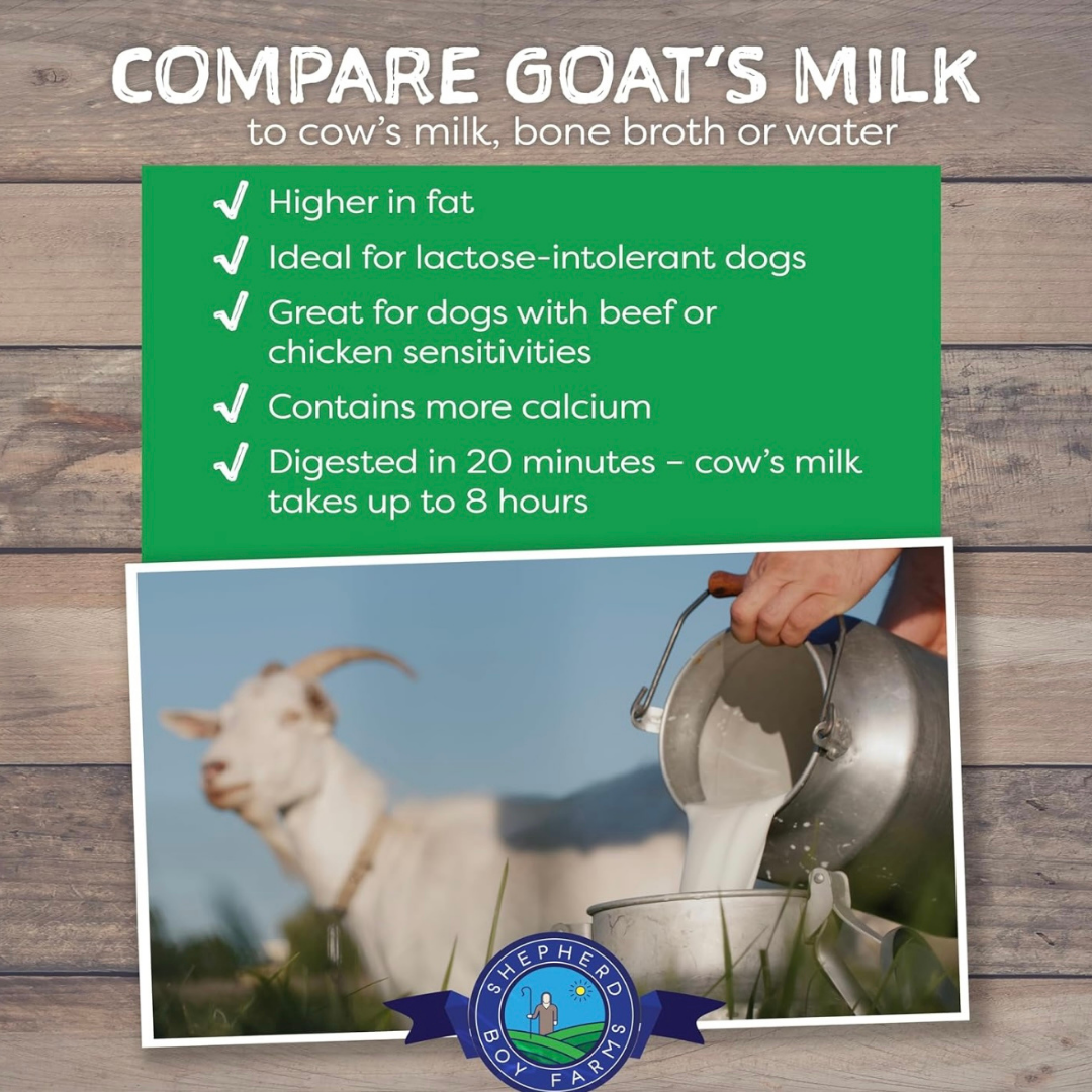 Shepherd Boy Farms Freeze-Dried Raw Goat’s Milk – Super Greens Blend gives your dog the gut-friendly power of raw milk plus the detoxifying, antioxidant-rich goodness of leafy greens—all in one scoop.