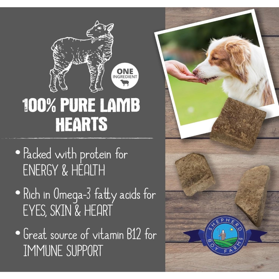 Shepherd Boy Farms Lamb Hearts deliver functional organ nutrition your dog craves—with none of the fillers or fluff. Just pure, freeze-dried raw heart in every bite.