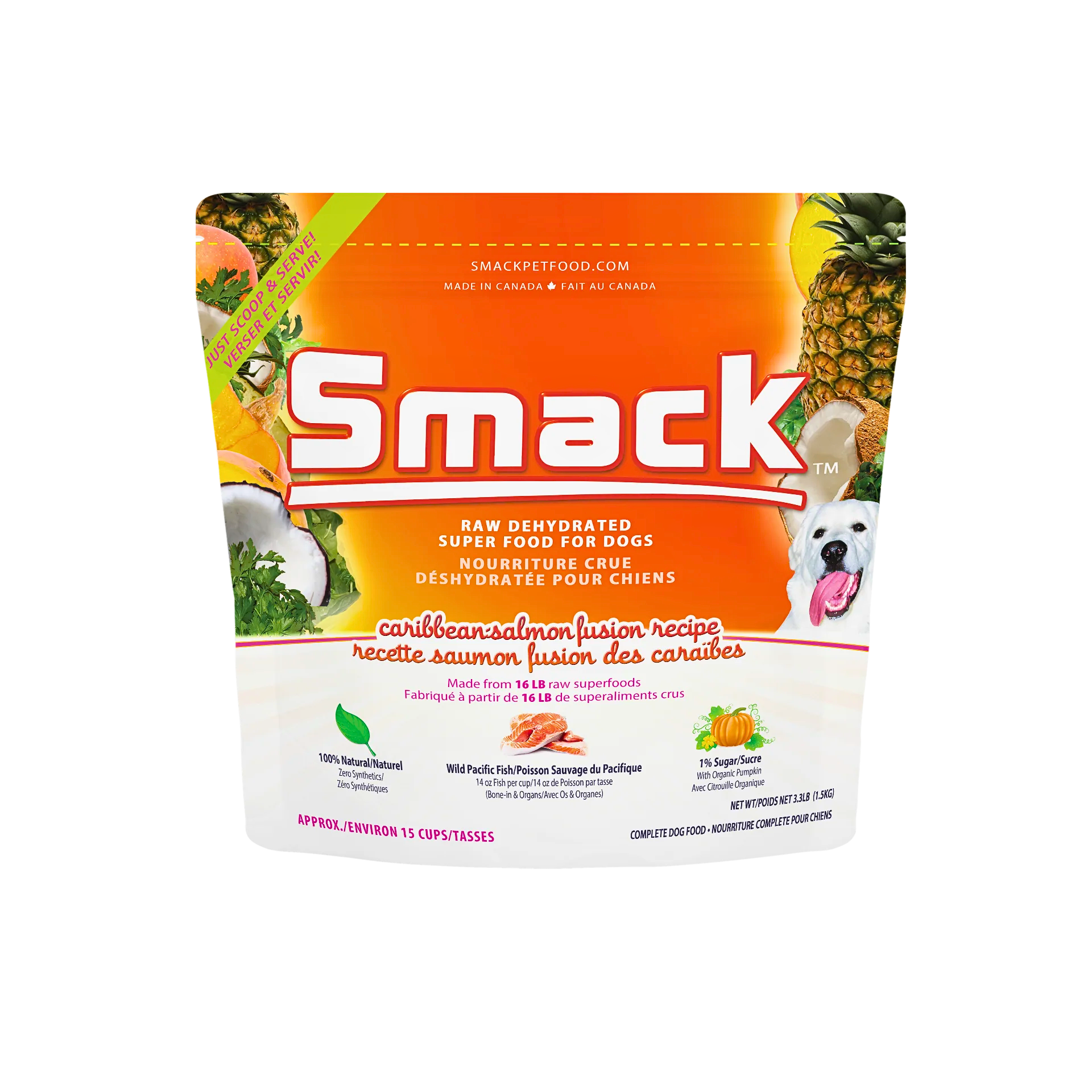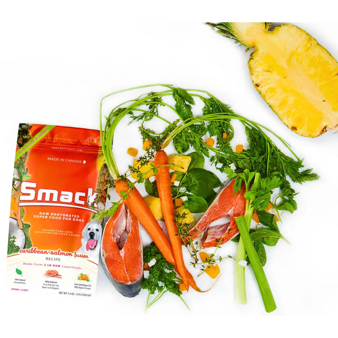 Smack’s Caribbean Salmon Fusion makes raw feeding effortless—delivering ocean-sourced protein, superfood antioxidants, and anti-inflammatory nutrients in a crunchy, delicious, shelf-stable meal your dog will love. Real ingredients, real results, and real peace of mind for you.