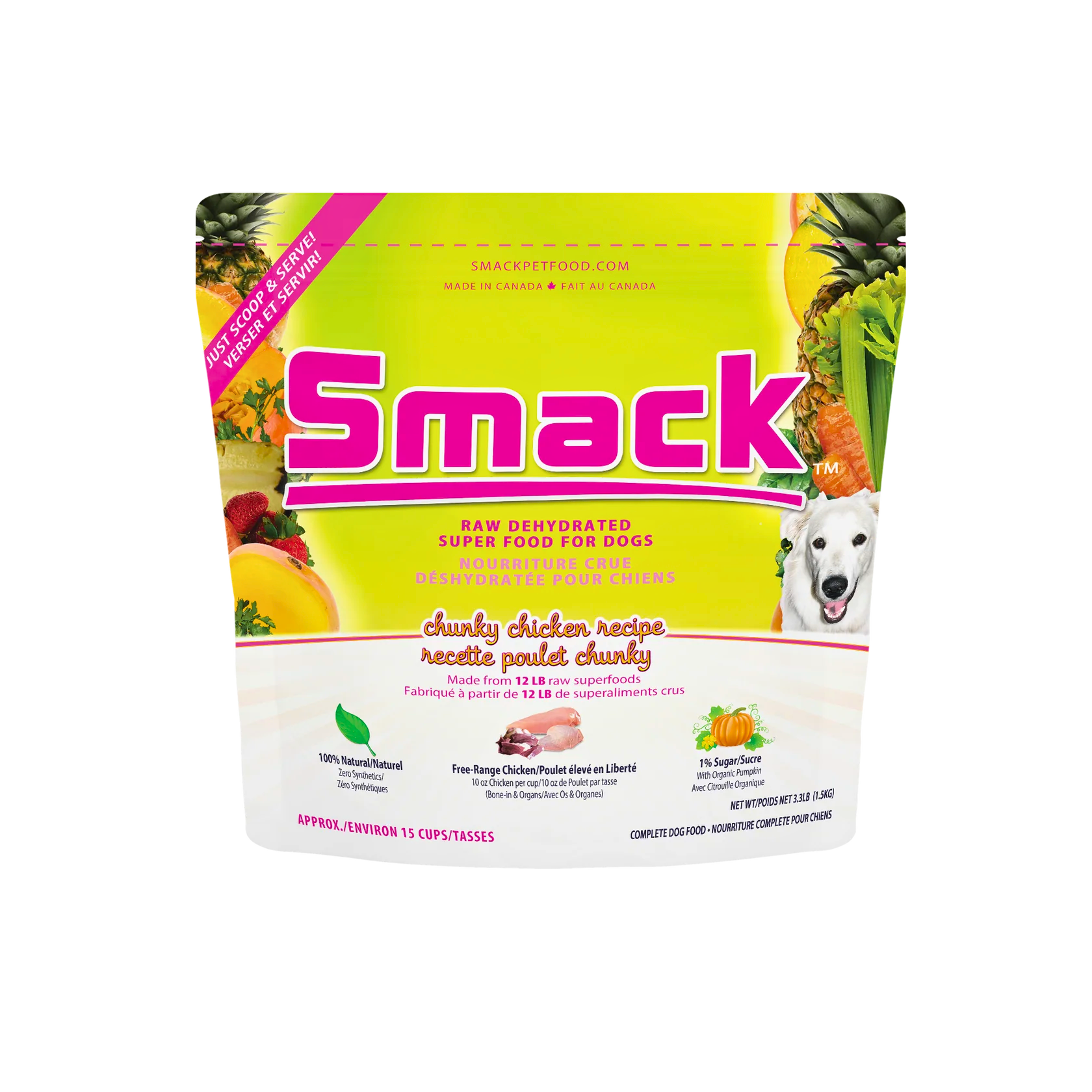 Smack Chunky Chicken Crunchy Style brings real food nutrition back to the bowl in a form that works for real life, supporting your dog’s health with ingredients chosen for function, balance, and long-term wellbeing.