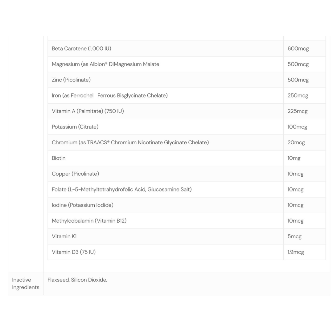 ✓ Includes absorbable B vitamins, chelated minerals, and antioxidants for full-body support