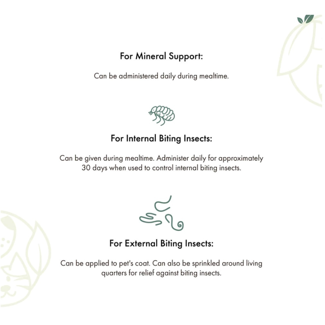 More than just parasite support, this formula also supplies trace minerals like silica, which play a key role in bone strength, joint health, skin integrity, and connective tissue support. When used externally, it can be applied to your dog’s coat to create an environment fleas, mites, and other pests don’t like—without exposing your pup to unnecessary chemicals. It’s a simple, one-ingredient supplement that supports your dog’s health from multiple angles.