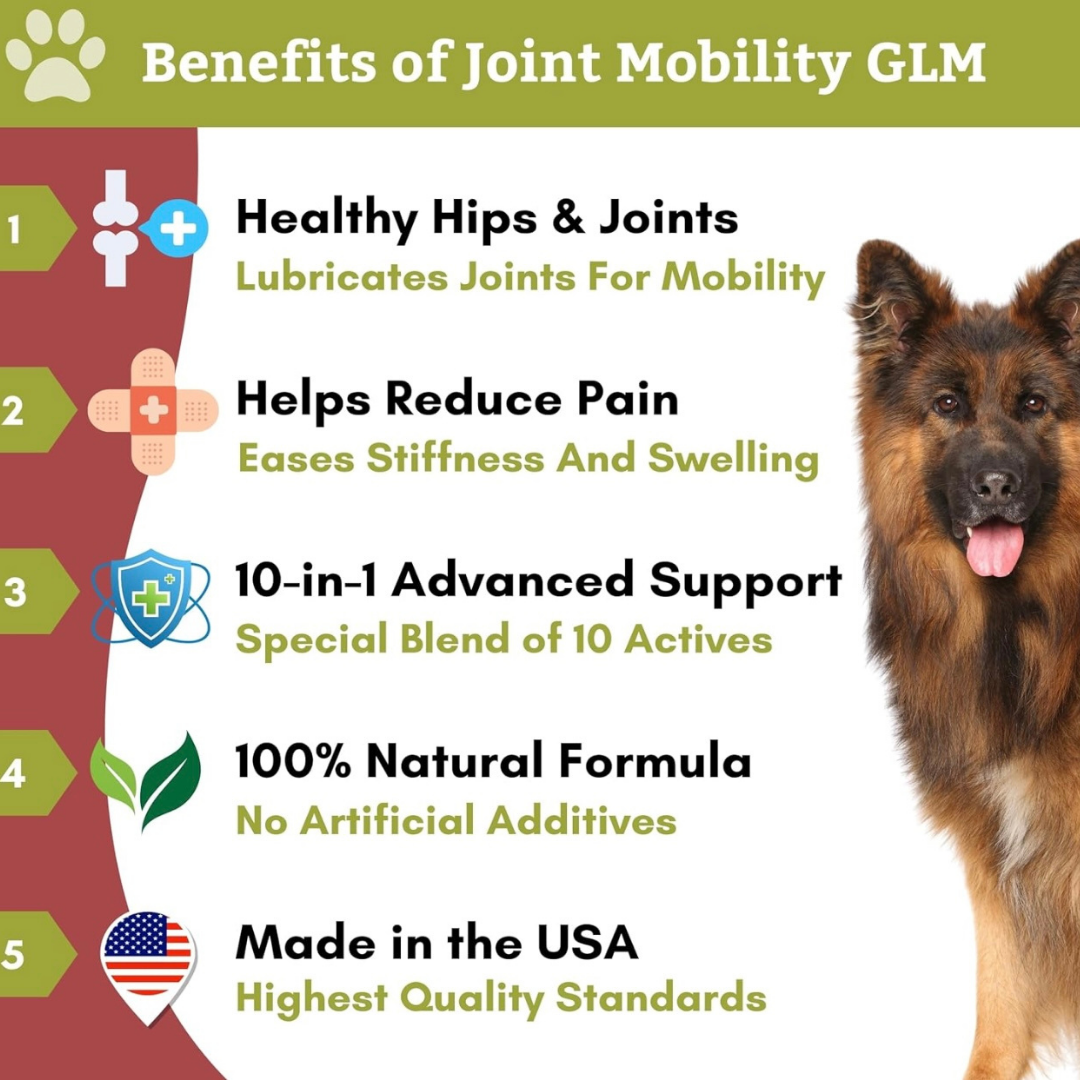 I am incredibly pleased with the results of the Joint Mobility GLM for my dog who has struggled with joint issues. Since starting on this supplement, there's been a noticeable improvement in her mobility and energy levels. She no longer hesitates before stairs and seems much more comfortable during walks.