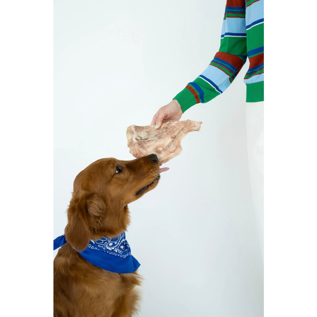 Bison scapulas are firm yet digestible, making them an ideal alternative to rawhide or synthetic chews. Their unique texture helps support dental health by gently scraping plaque and tartar from teeth as your dog chews. Plus, the natural cartilage and joint-supportive compounds in the scapula may offer added benefits for hip and joint health—especially in aging or active dogs.