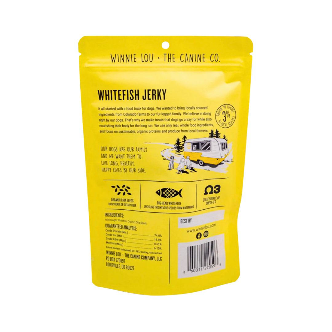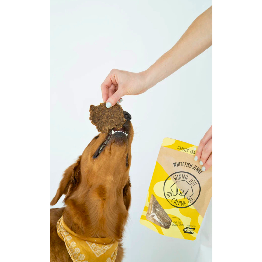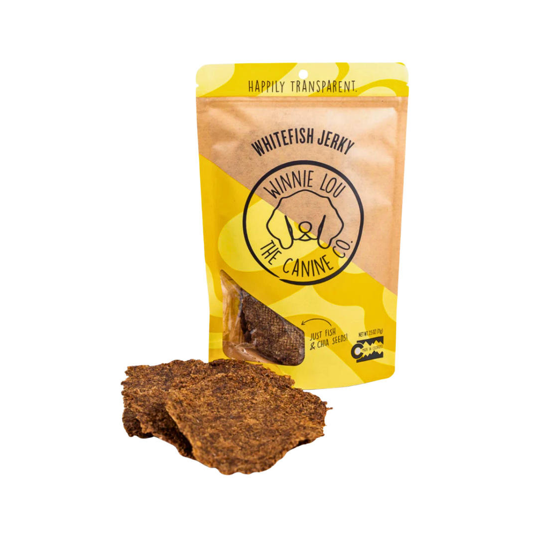 Treat your pup to the clean, simple nutrition of the sea with Winnie Lou Whitefish Jerky. Made from just two powerhouse ingredients—wild-caught whitefish and organic chia seeds—this jerky delivers lean protein, essential omega-3 fatty acids, and plant-based nutrients in every bite.