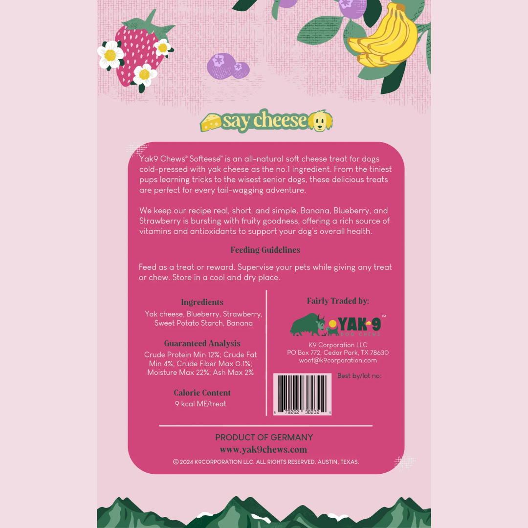 Yak9 Softeese Yak Cheese Bites | Strawberry + Blueberry + Banana