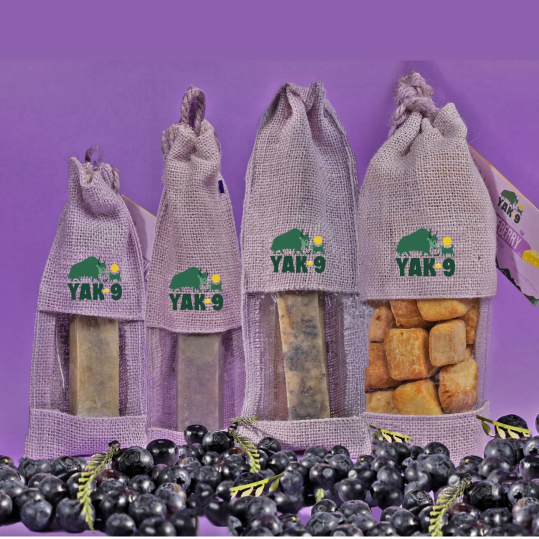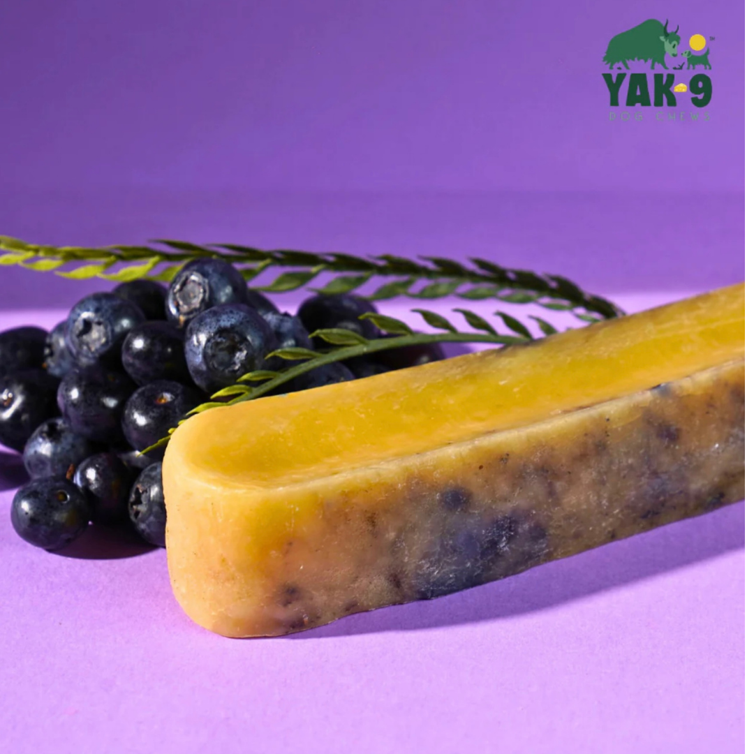 The Yak9 Blueberry Yak Milk Chew brings together the best of nature—dense protein, real fruit, and hours of chewing satisfaction in one antioxidant-rich treat.