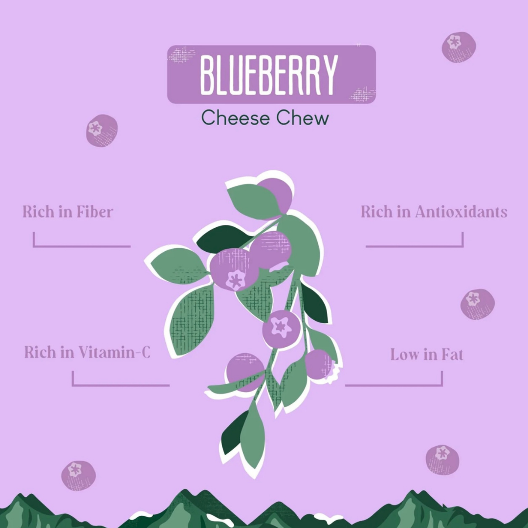 Blueberries are packed with antioxidants like anthocyanins and vitamin C, which help neutralize free radicals and support immune function. They're also rich in dietary fiber, which gently supports digestion and microbiome balance. Adding this fruit to a traditional yak milk chew makes for a smarter, more nourishing snack.