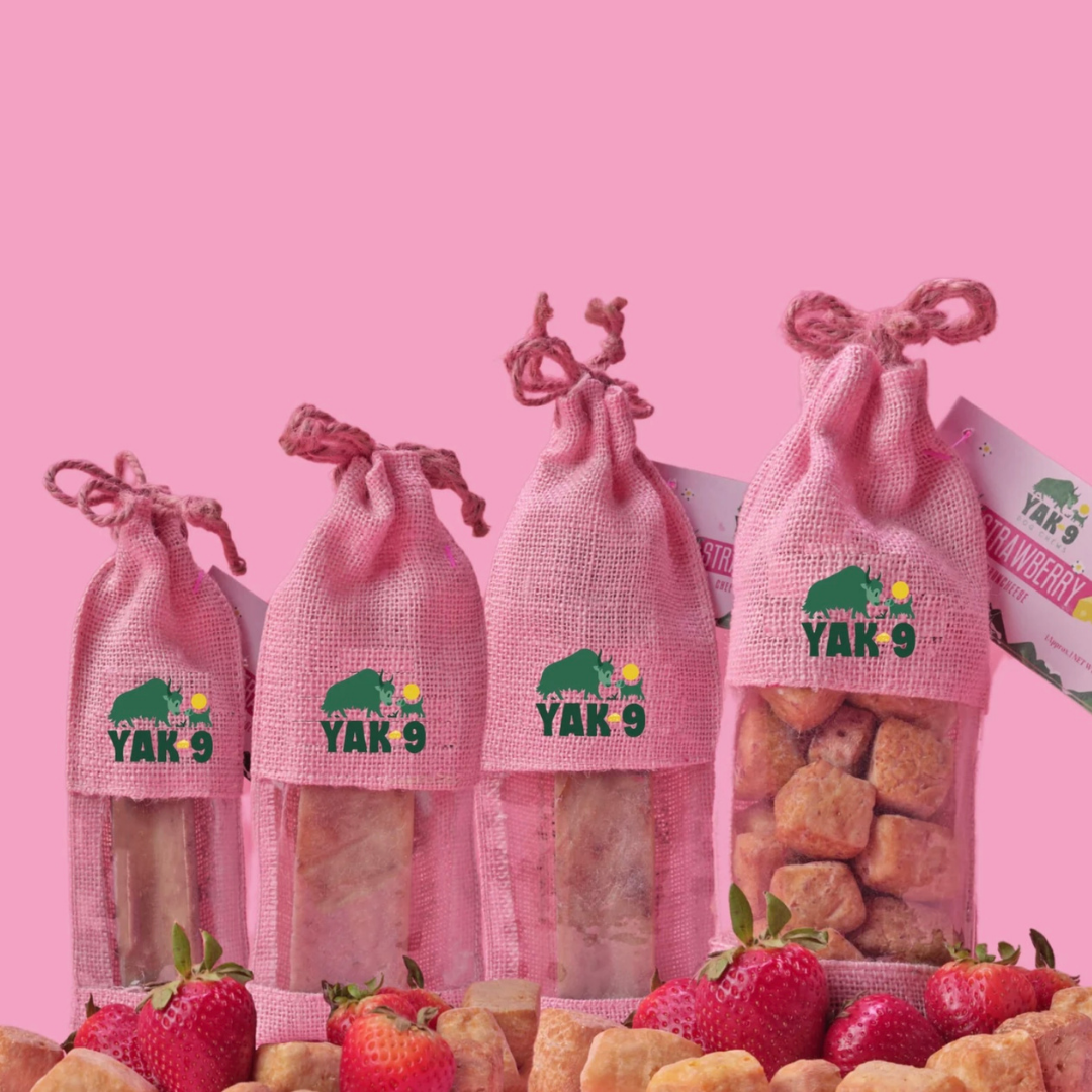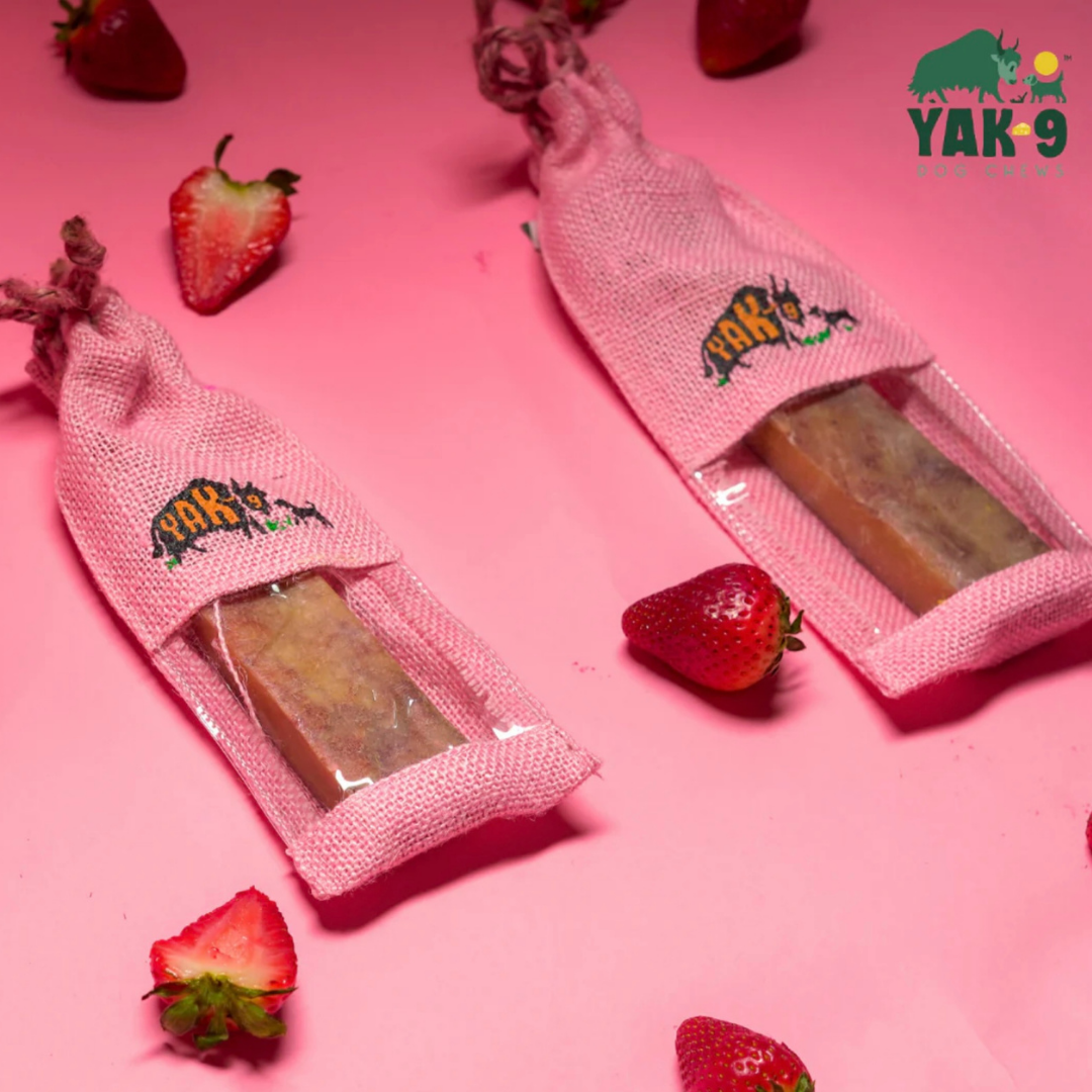 The Yak9 Strawberry Yak Milk Chew turns snack time into a superfood-powered chewing experience—rooted in tradition and made for modern dogs.